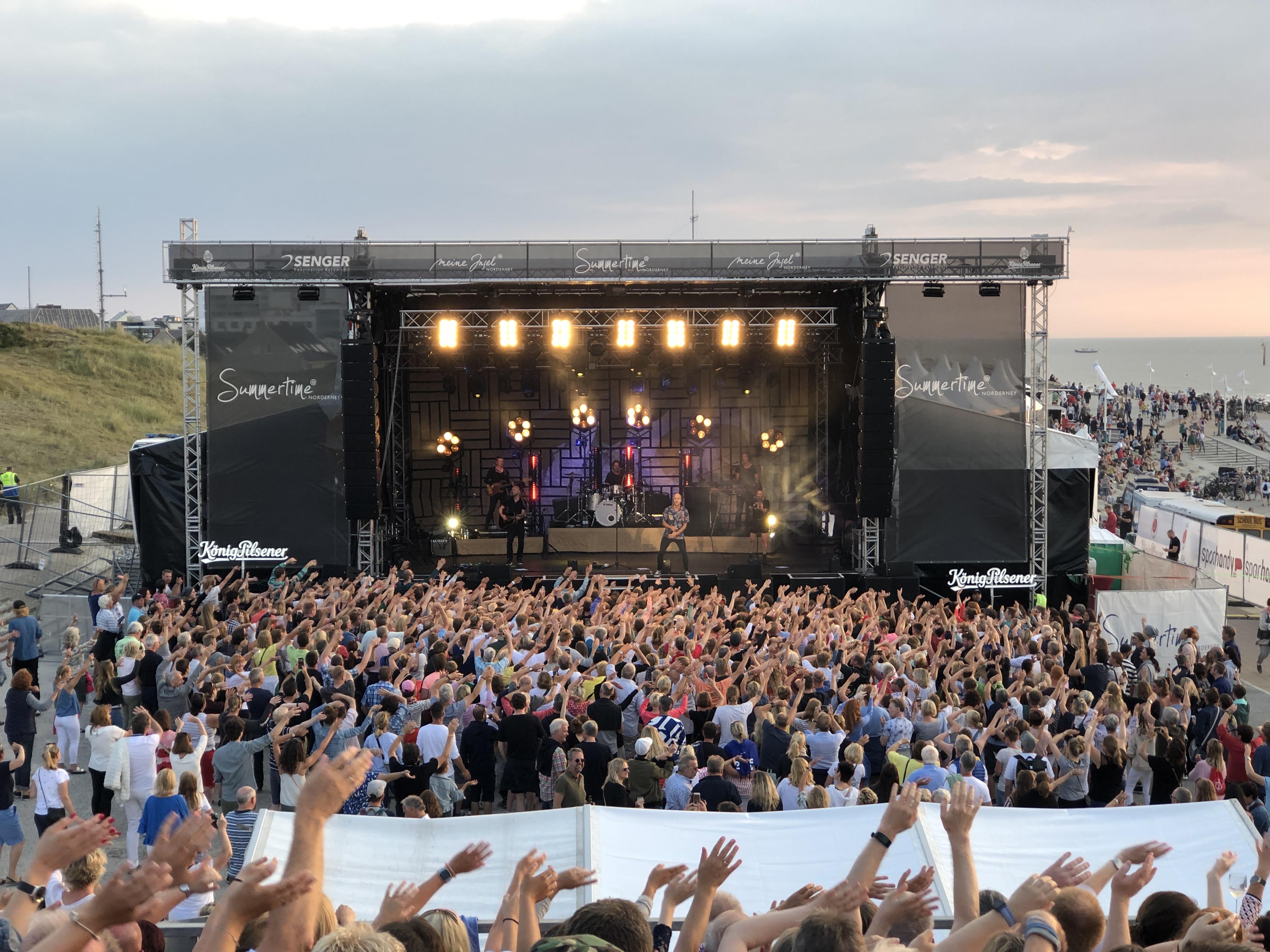 Seit 9 Jahren betreuen wir das Festival Summertime@Norderney. An 5 Tagen tritt täglich ein Top-Act der Musikszene auf wie z.B. Max Giesinger, Johannes Oerding, oder Mark Foster.
